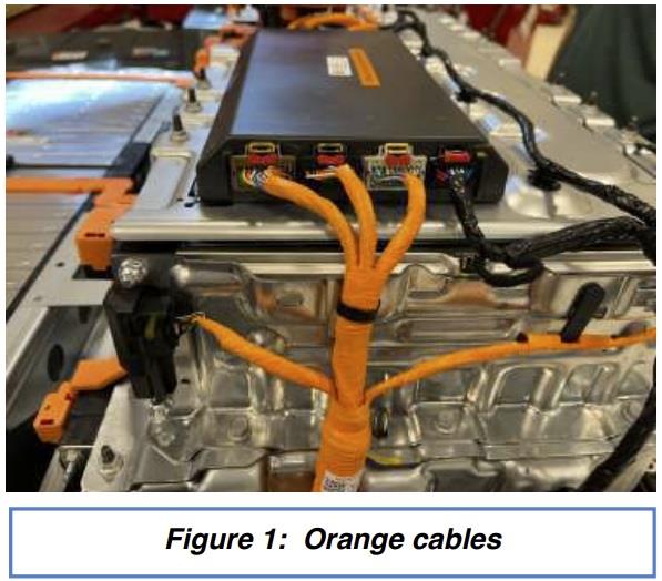 has an electrical potential of greater than 60 volts DC or 30 volts AC will be identified by orange coverings or conduit (See Figure 1 – Orange cables). Unprotected contact with a live high-voltage circuit could result in serious burns, electrocution, or death.